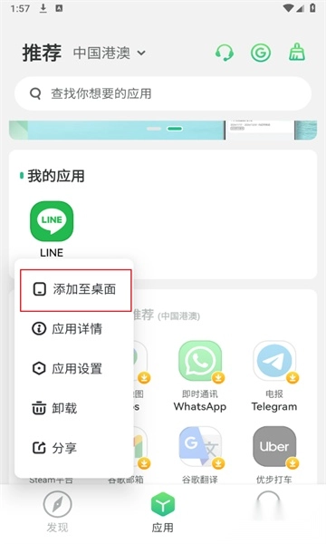 长按已安装的应用时,系统会弹出“添加至桌面”的提示;点击该提示后,会进一步要求开启桌面快捷方式权限,此时需前往系统设置界面完成权限开启操作。