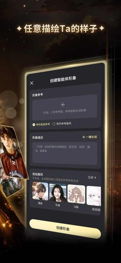 高质量创建:仅需简单描述,就能自由定制AI智能体的「形象、声音、人设、技能」,还能与更多AIGC兴趣用户互动,一同构建丰富有趣的智能体内容社区。