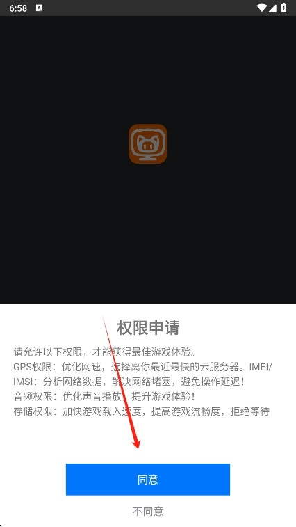 这时候进入会让我们阅读同意麻吉云游的用户协议