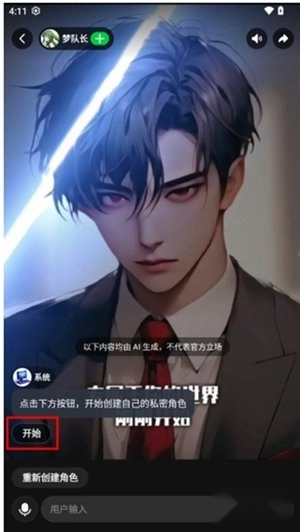 2、接着,点击开始按钮,着手进行个性化角色的创建。