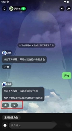 3、系统将以问答形式引导您,帮助您详细描述心中理想的聊天伙伴形象。