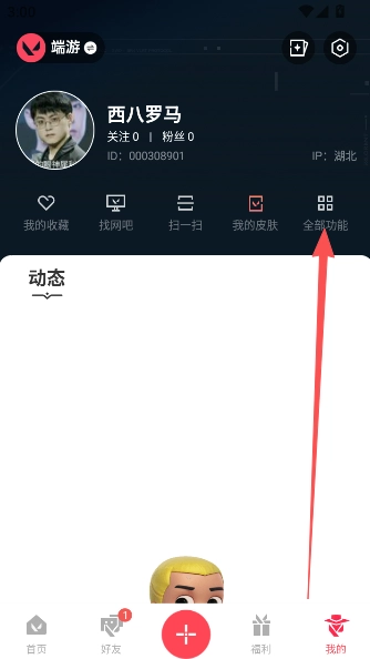 1、在用户页面点击“我的”,然后选择上方的“全部功能”选项。