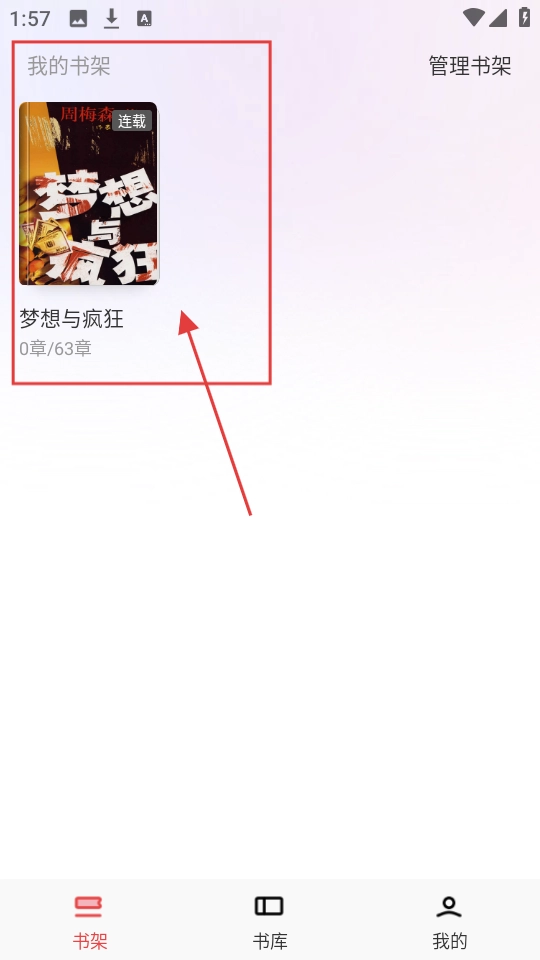 书架页面选【梦想与疯狂】,点进去开始阅读吧。