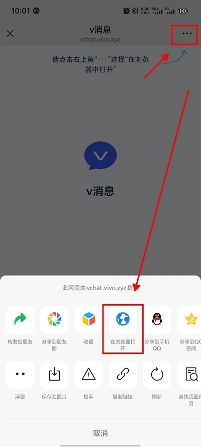 V消息操作指引消息: