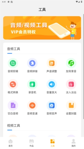 3、【工具页面】:主要是分为音频工具、视频工具,是有很多的工具等着用户使用的,丰富了音频/视频的内容;