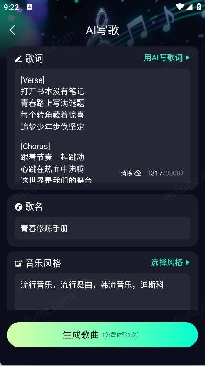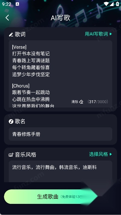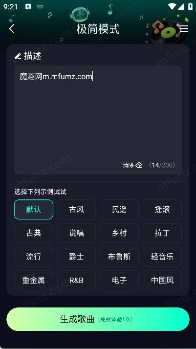 界面直观易用,无需具备专业音乐知识,只需选择情绪、流派、时长等参数,就能快速生成音乐。