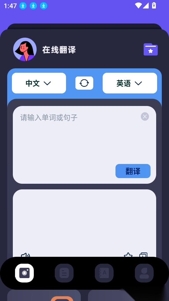 进入软件的翻译界面后,在底部菜单栏找到第二个“圆圈图标”并点击进入即可。