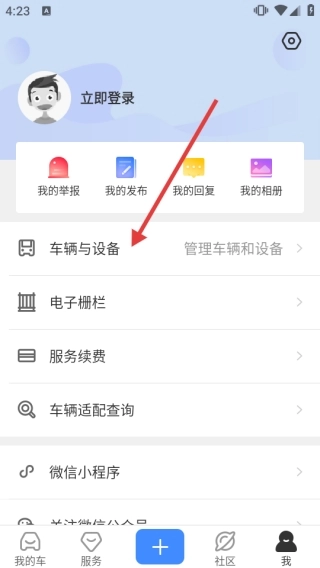 2、在个人页面,点击【车辆与设备】,管理相关信息。