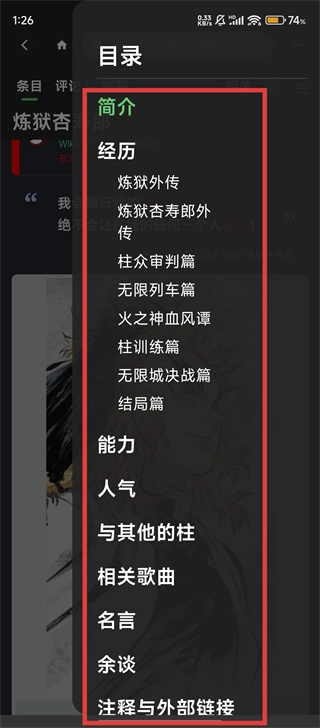 4、在目录列表里,选择【简介】【经历】这类分类,就能快速跳转到对应的内容部分,方便你轻松查看详细信息。
