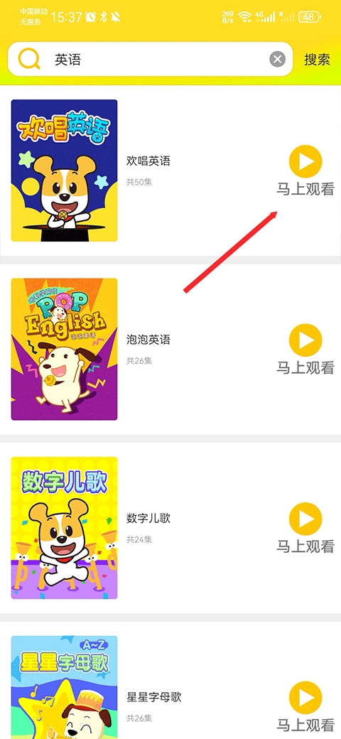 2、选择视频后点击马上观看。