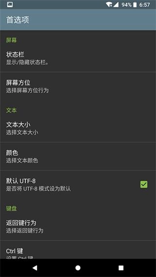 3、当终端会话处于运行状态时,为便于快速访问,系统会显示Android状态栏通知。