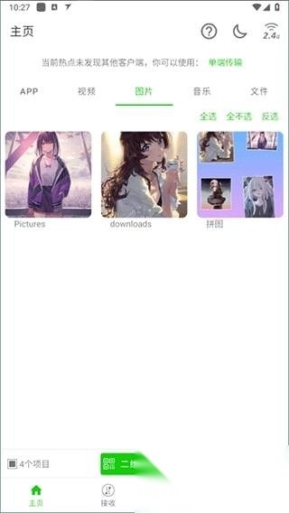 2、要是只有一方安装了软件,另一方可以通过扫描二维码或者在浏览器中打开链接的方式来进行传输。
