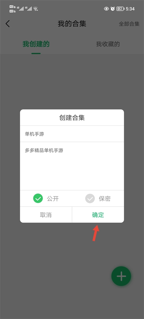 2、然后点击加号创建一个合集,填写相关信息确定。