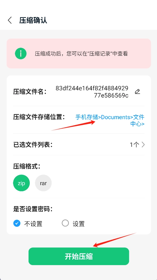 3、压缩文件:点击压缩按钮,选择压缩路径后点击确定,系统就会开始将文件压缩到指定的文件夹里。