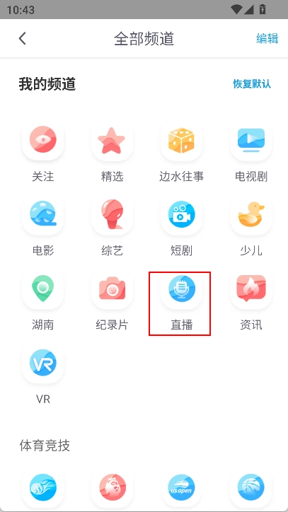打开应用后,直播频道默认处于隐藏状态,需要点击【全部频道】才能看到。