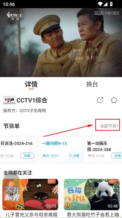 在播放页面详情,点击【全部节目】