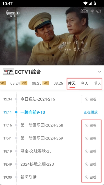 即可看直播昨天、今天、明天3天的节目回放。