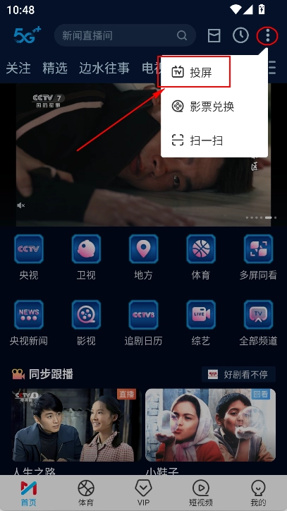 手机与要投屏的电视处于同一Wi-Fi网络环境时,点击视频播放页面右上角的“TV”图标即可。