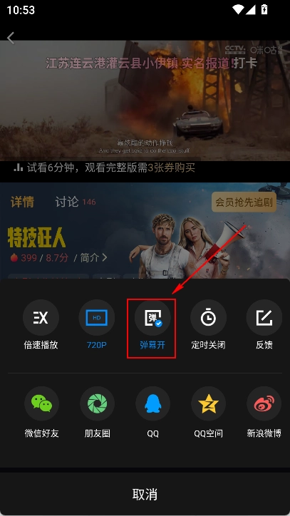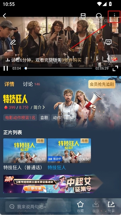 在播放页面,点击右上角三个点
