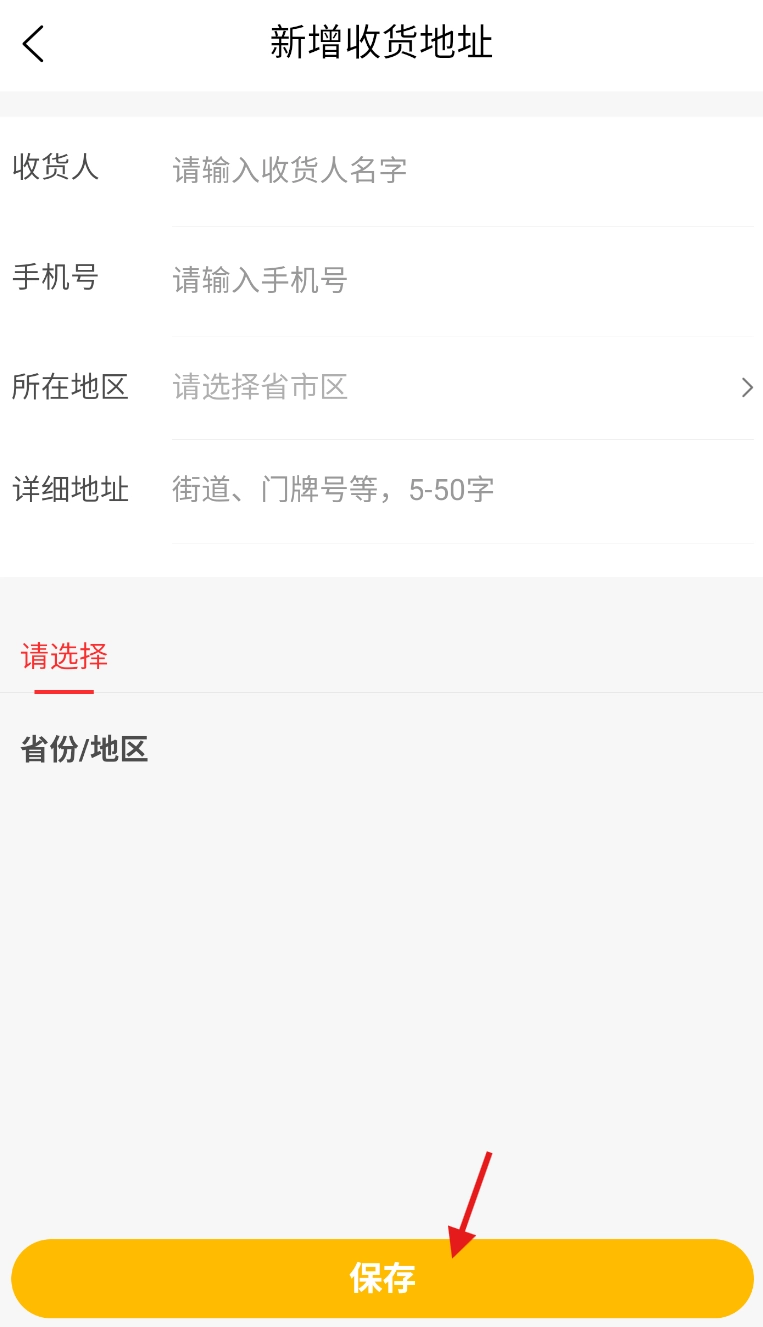 3、在收货地址页面,找到醒目的 “新增地址” 按钮,点击开启新建收货地址流程。