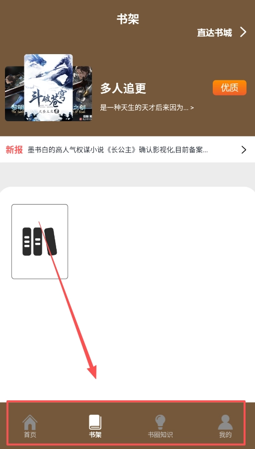 一、启动软件后,先留意底部的四个标签页,其中“书架”页是你阅读的核心区域,所有追更和收藏的内容都由这里统一管理。
