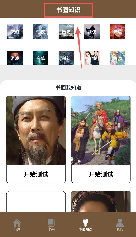 三、书圈知识板块中的“书圈我知道”属于互动功能,点击“开始测试”后,系统可能会展示一系列选择题或评分题,再依据用户的作答情况生成相应推荐。
