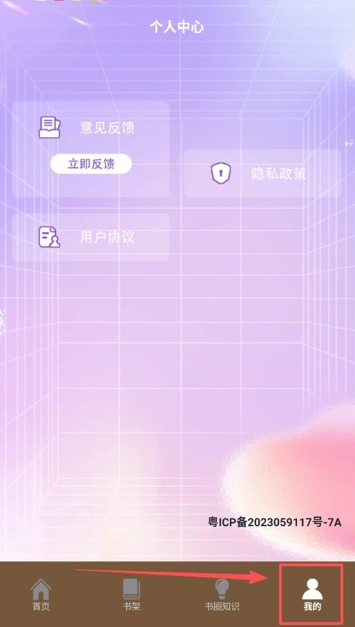 四、软件的管理后台位于“我的”页面。意见反馈、隐私设置等功能均在此处操作,以便你能快速返回主要的阅读场景。