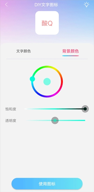 2、输入文字、调节字体的颜色、透明度大小等,以及背景颜色后,点击“使用图标”’即可。