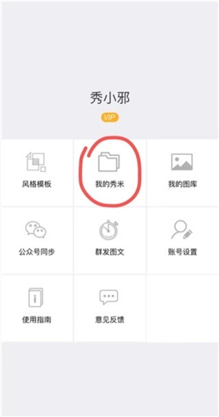 登录秀米之后,点击首页上“我的秀米”
