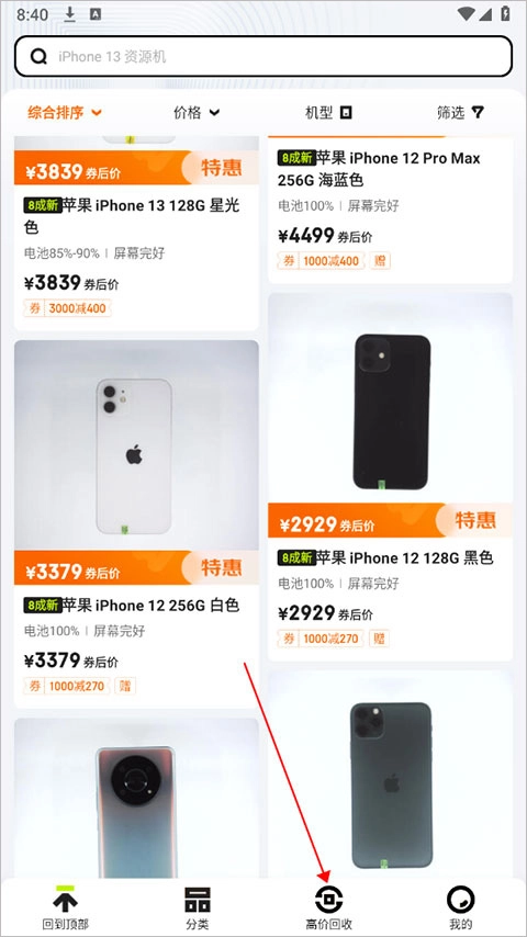 1、进入京东拍拍严选,选择下方“高价回收”选项