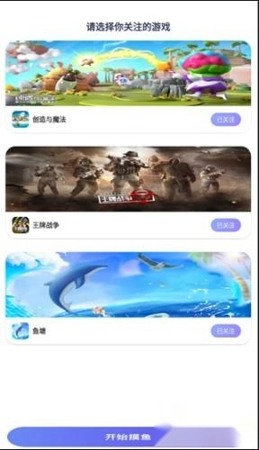 1、打开摸鱼社后,系统会提示选择需要关注的游戏,你可以从中挑选任意一款自己需要的。