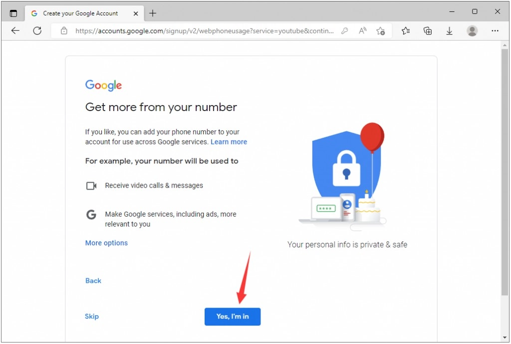 10、该页面主要是在未来可能会给您发布一些广告信息、以及把您的手机加入到Google账户来保证后期的安全。