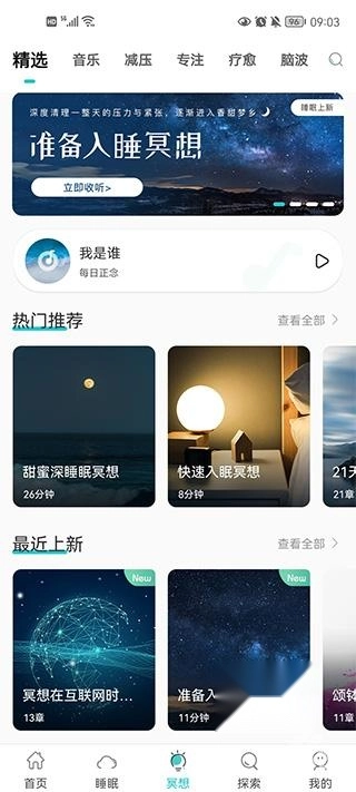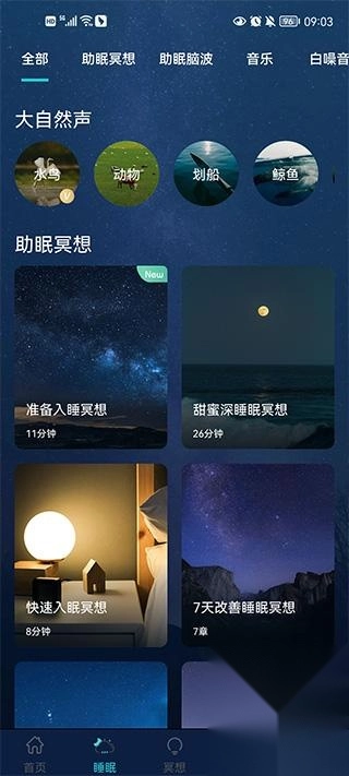 3、【睡眠区】包含睡眠冥想、睡眠故事、睡眠音乐、白噪音、脑电波等内容,助力你切实改善失眠状况,提升睡眠质量。