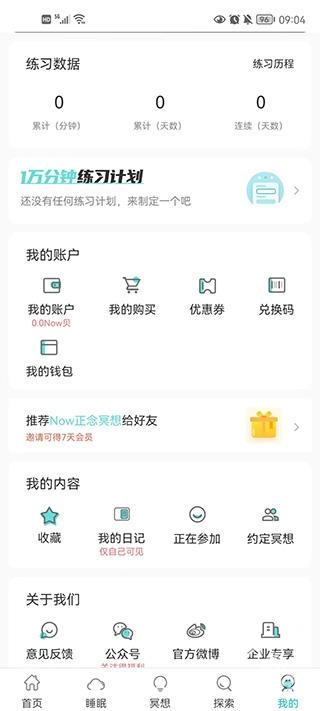在我的应用里,用户能够随时随地查看自己的账户信息、个人日记以及约定好的冥想周期计划。