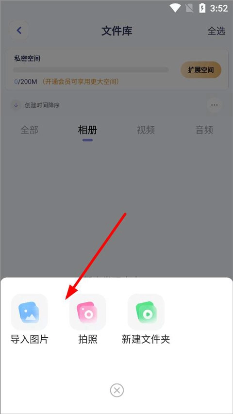 2、点击添加符号,创建文件夹,然后选择手机里要导入的照片或图片。