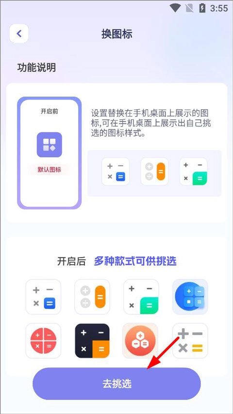 1、用户打开隐藏游戏计算器,在首页点击应用图标替换功能。