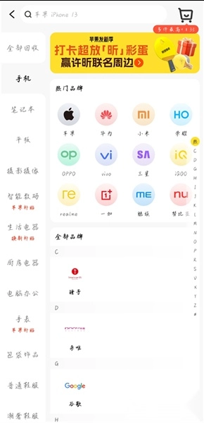 覆盖手机、平板、笔记本电脑、奢侈品等主流数码产品与贵重物品的回收业务。