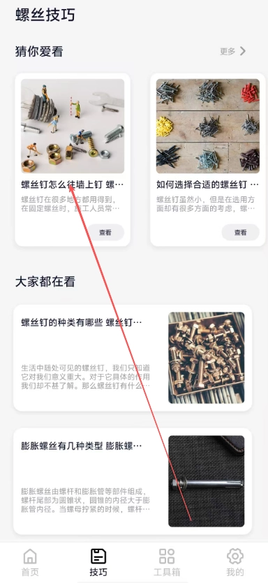 2、随后,在技巧页面里,用户还能够了解各类螺丝的使用技巧。