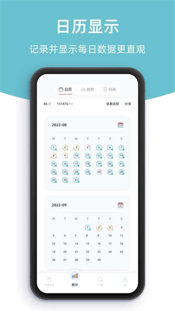 3.借助日历功能,能够查看每日、每周或每月的饮水记录,方便回顾和调整饮水计划。