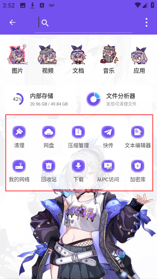 2、主页面整合了压缩管理、快速传输、文本编辑、回收站清理及管理等诸多实用功能。
