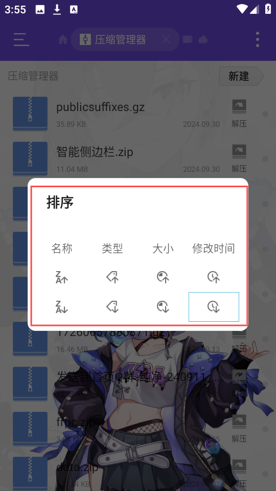 2、文件有五种排序方式,分别为:按名称升序或降序排列、按日期升序或降序排列、按大小升序或降序排列,以及按类型排列。