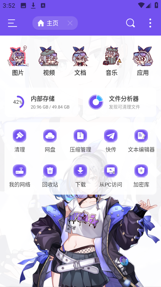 ES管理器美化版,基于星穹铁道的画面风格获取灵感并加以修改,采用紫色皮肤设计,为用户提供免费使用体验。它支持快速的文件分享与共享操作,功能实用,适用场景广泛,而且不会受到任何广告的干扰。