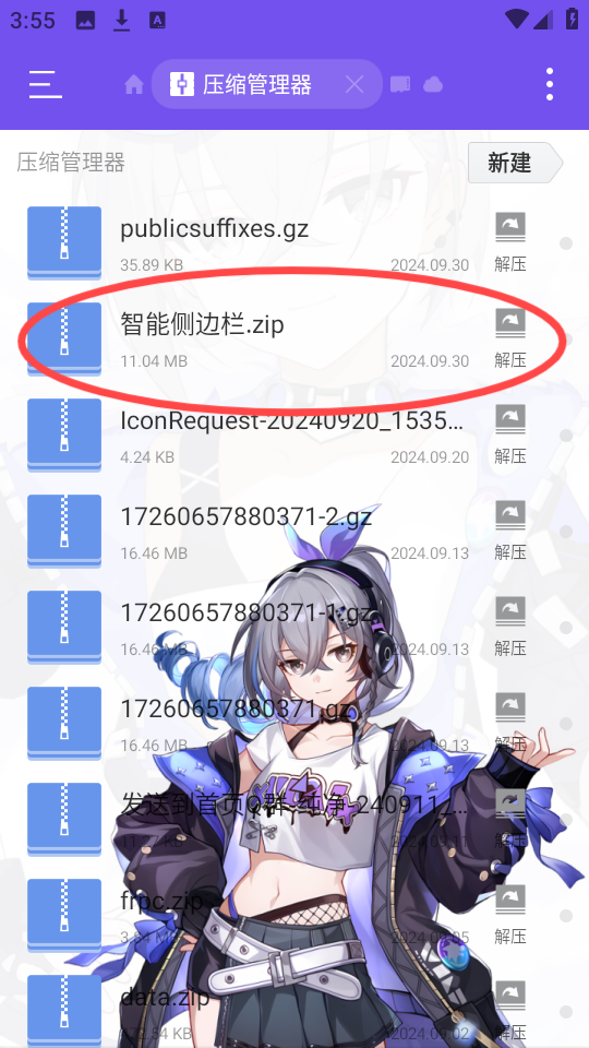 4、挑选一个目标应用,比如“智能侧边栏”,接着点击“解压”按钮,启动解压流程。