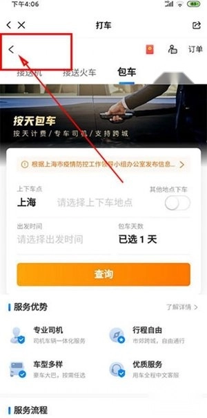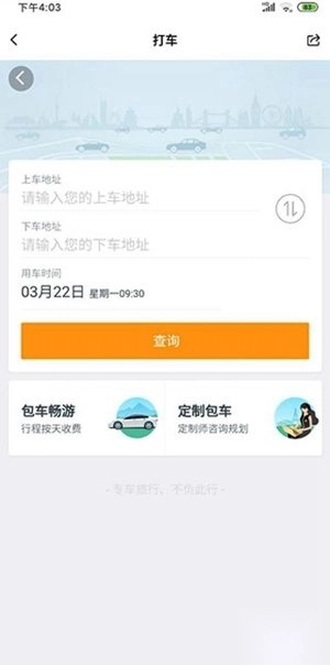 2、在打车服务页面,选择"租车"选项即可享受免费出行。