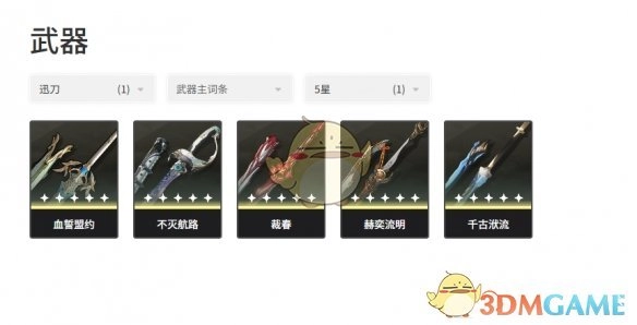 2、当前五星迅刀武器共计五把,长离、椿以及船长所持的皆为迅刀。