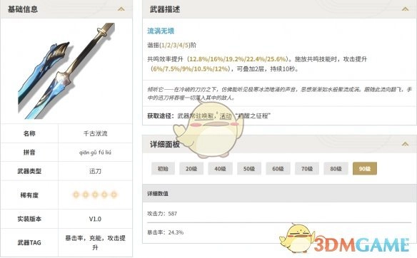 常驻池里的五星武器,几乎每个人都有一把,其主词条增加暴击属性,同时还能提升共鸣效率与攻击力。
