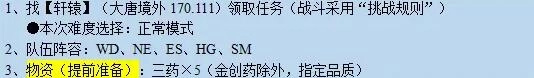 1、前往大唐境外坐标(170,111)处,找【轩辕】领取任务(战斗遵循“挑战规则”)