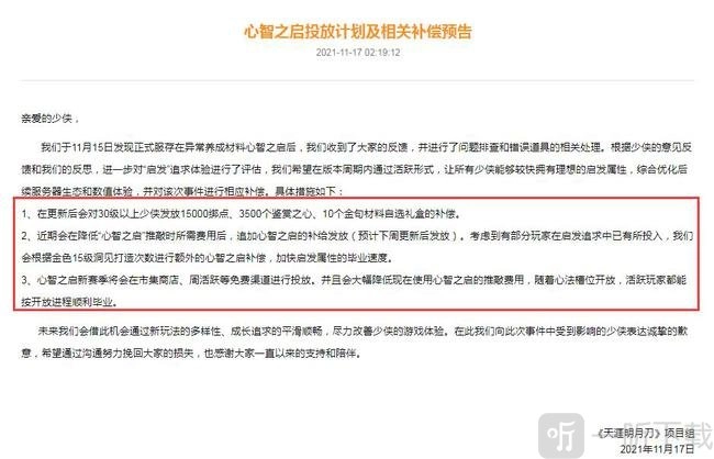 面对玩家们的质疑,《天涯明月刀OL》官方迅速做出回应。官方表示,正式服出现未投放道具,是由于此前工作人员在处理“鉴赏之心”误操作需求时,发放了错误道具。所以,官方将对已发放的这类道具进行清除。此外,后续天刀官方给全服玩家补偿了500荡剑币。