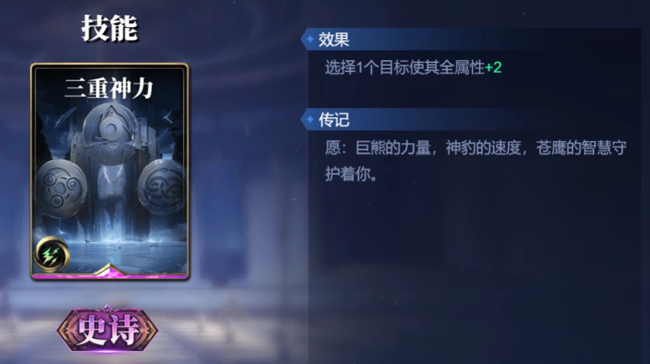 与此同时,由于携带了三重神力,夸父的三项属性值能够被轻松提升,进而让他得以使用灵魂汲取与诡计多端这两张强力构筑卡。灵魂汲取能够弥补夸父因使用【舍身重击】而损耗的生命值,而诡计多端则可用于破坏对手的手牌与装备。