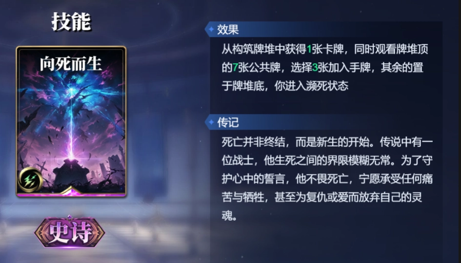 同时,在低血量的时,手上没有黄金苹果也可以主动使用向死而生来过牌,触发【不灭之焰】恢复生命值。